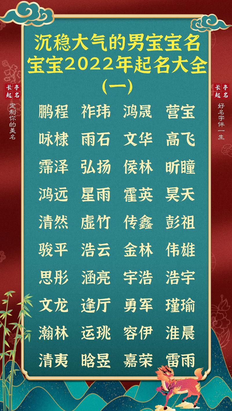 2、男孩子运用男宝宝所属生肖取名字生肖对应的出生年份也不同,比如今年2022年为虎年,那么可借助虎所喜的“山、玉、金、木、示、水、月、犭、马”等字根的字起名字,以此提升小孩子未来的发展。
