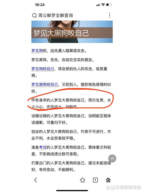 孕妇梦见被黑狗咬是什么意思2孕妇梦见被黑狗咬,预示着自己对宝宝有一种期待,在周公解梦里,这个梦境是代表母子平安,此外孕妇梦见狗还是生男生女的预兆。
