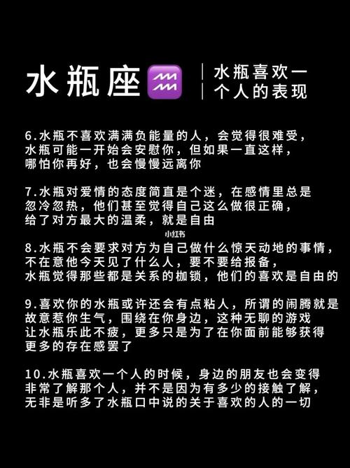 水瓶座女孩喜欢一个人,她们会很忠诚,会很专一,会很长情,水瓶座女孩喜欢一个人,她们会很坚持,会很执着,会很努力,水瓶座女孩喜欢一个人,她们会很勇敢,会很坚强,会很独立。水瓶座女孩喜欢一个人,她们会很真诚,会很热情,会很活泼,水瓶座女孩喜欢一个人,她们会很善良,会很温柔,会很贤惠。水瓶座女孩喜欢一个人,她们会很孝顺,会很顾家,会很懂事。