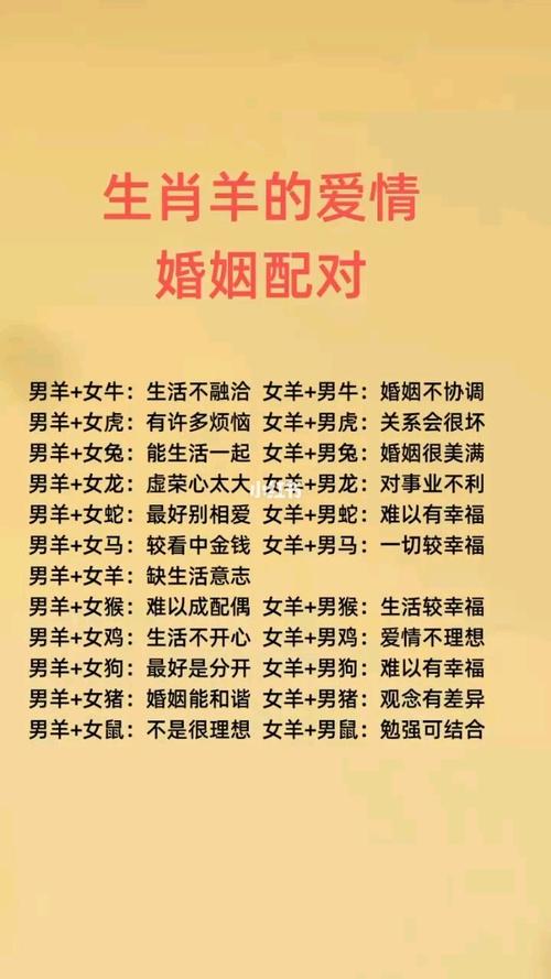 羊在十二生肖中性格温顺、善良,但也有固执的一面,属羊人与其他生肖结婚时,会面临不同的缘分与挑战。以下几个生肖是羊最不配的,需要考虑清楚再做决定。