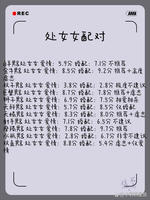 价值观一致: 处女座女生通常比较注重细节,而双鱼座、巨蟹座和金牛座的男生也比较注重生活品质。双方对生活的共同追求可以使感情更加牢固。